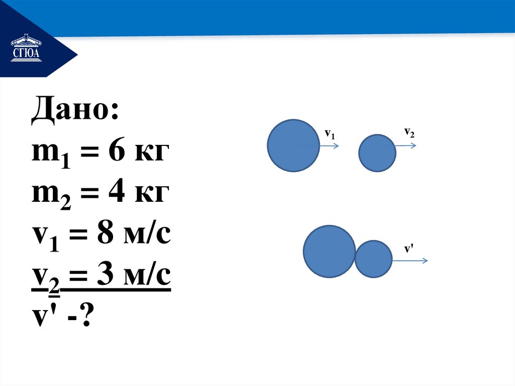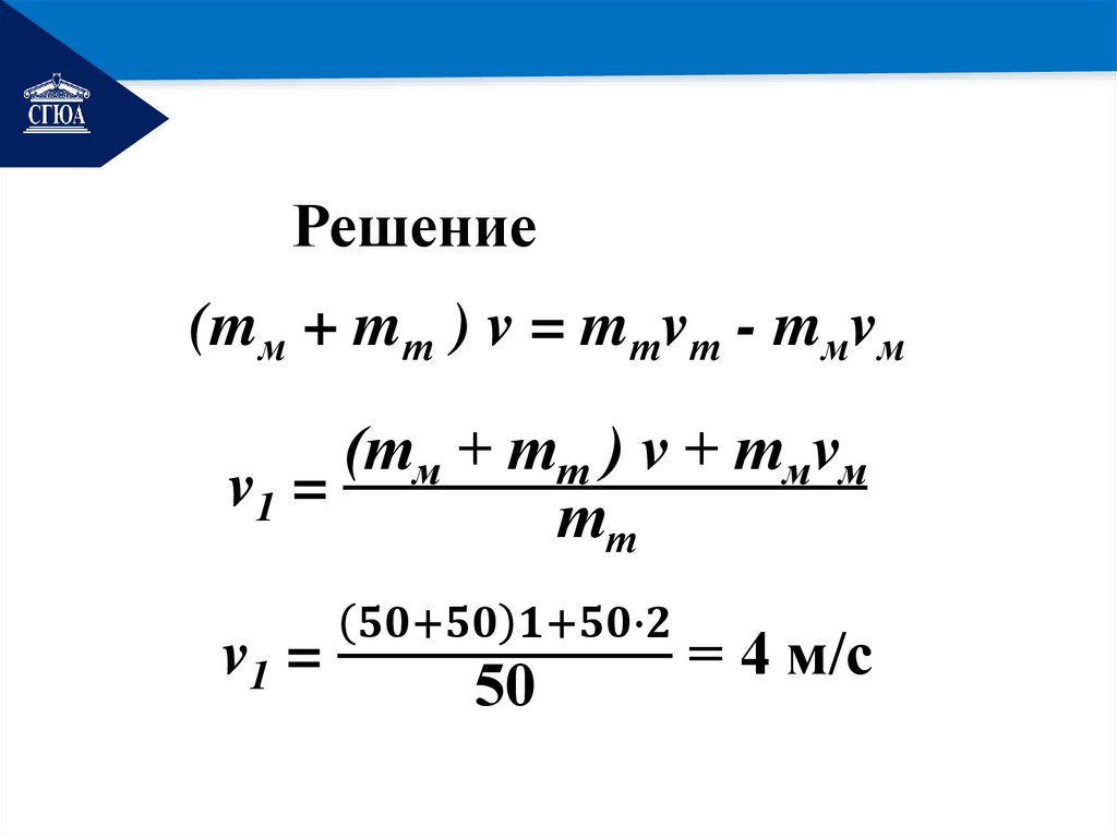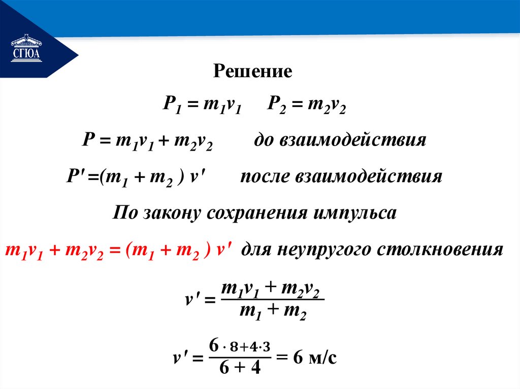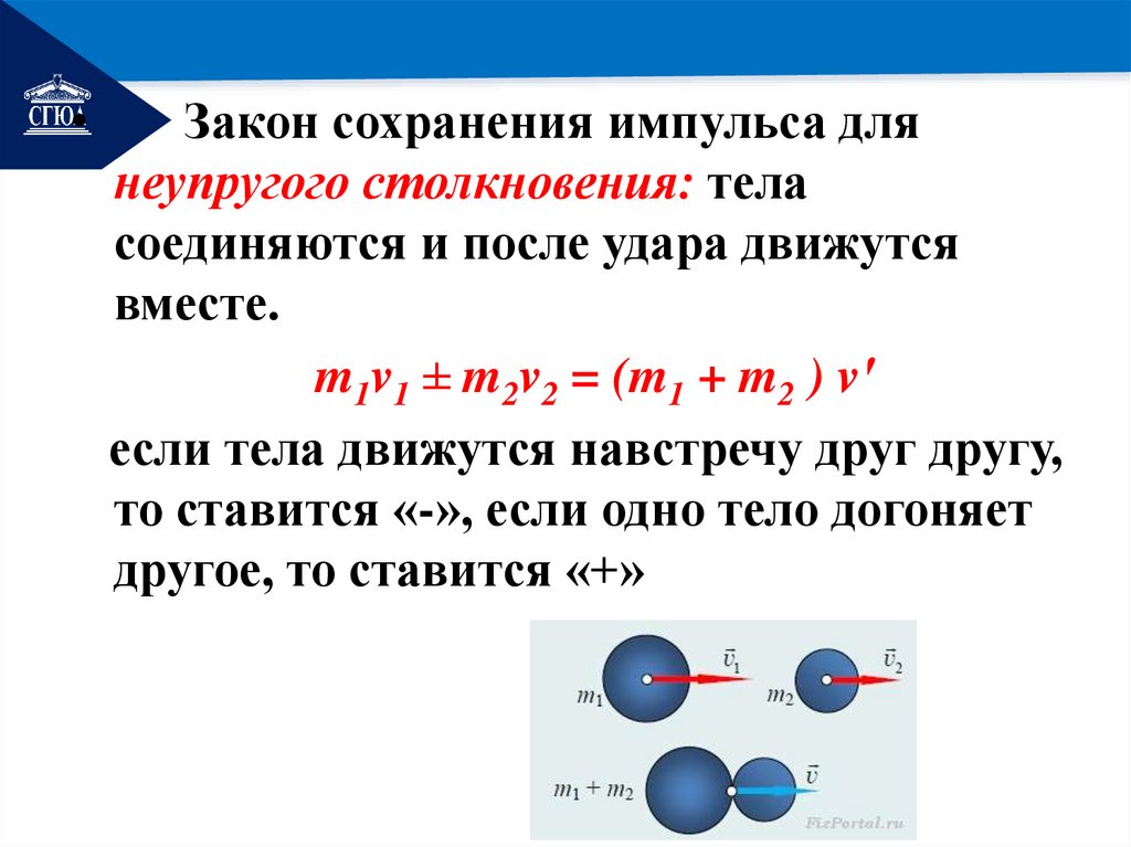 m1v1 + m2v2 = (m1 + m2 ) vꞌ для неупругого столкновения