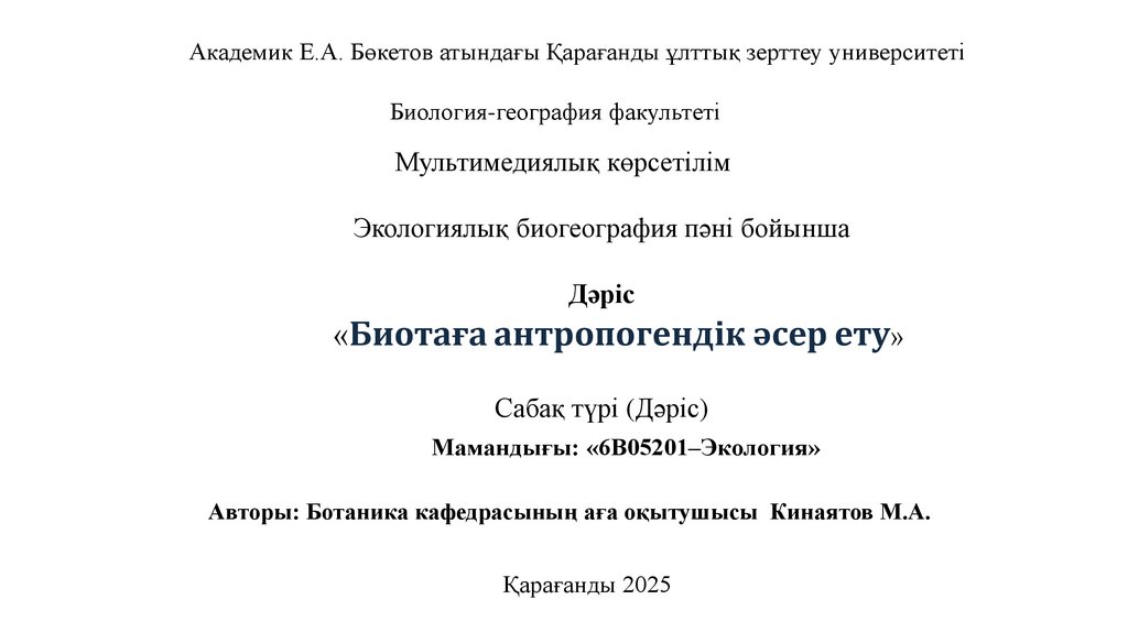 10 «Экологиялық бмогеография» пәні бойынша электронды дәрістер, Е.Қ.Кейкин Е.А. Букетов атындағы ҚарМУ, 2019
