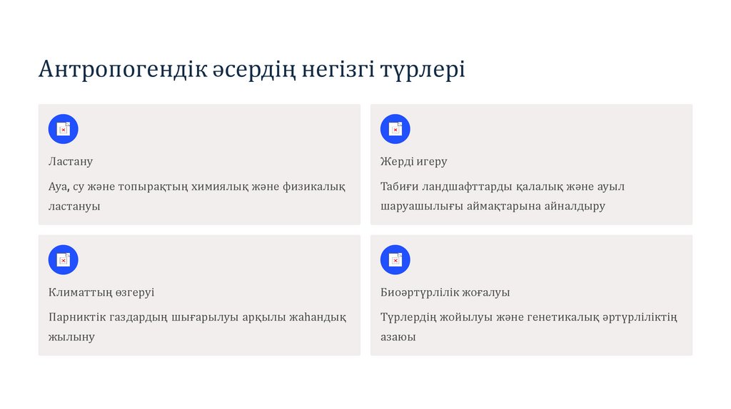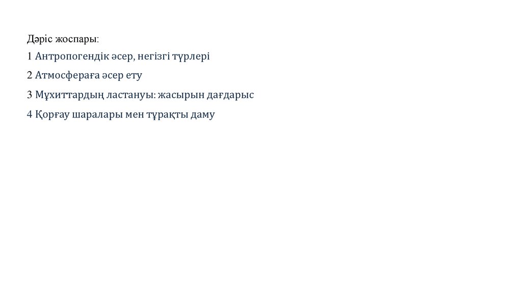 Дәріс жоспары:1 Антропогендік әсер, негізгі түрлері