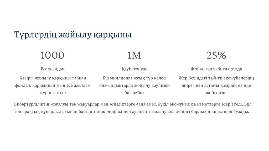 экожүйелердің тұрақтылығына қауіп төндіруде.