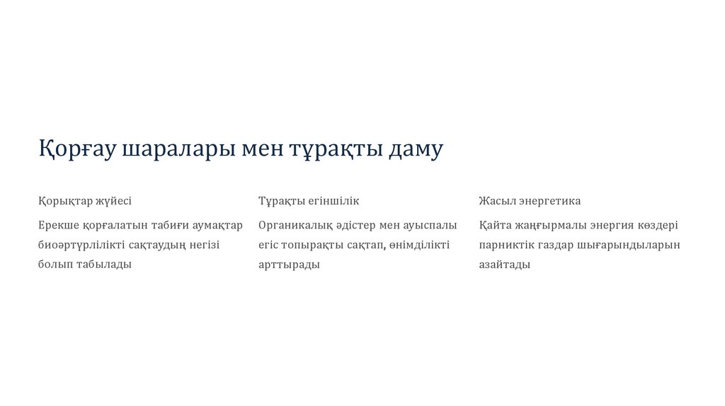 Қорғау шаралары мен тұрақты дамуҚорықтар жүйесі