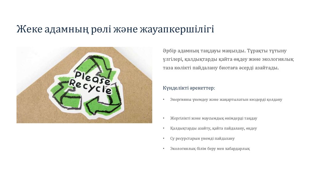 Жеке адамның рөлі және жауапкершілігіӘрбір адамның таңдауы маңызды. Тұрақты тұтыну