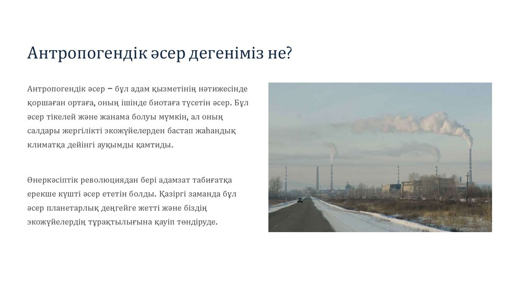 Антропогендік әсер дегеніміз не?Антропогендік әсер – бұл адам қызметінің нәтижесінде