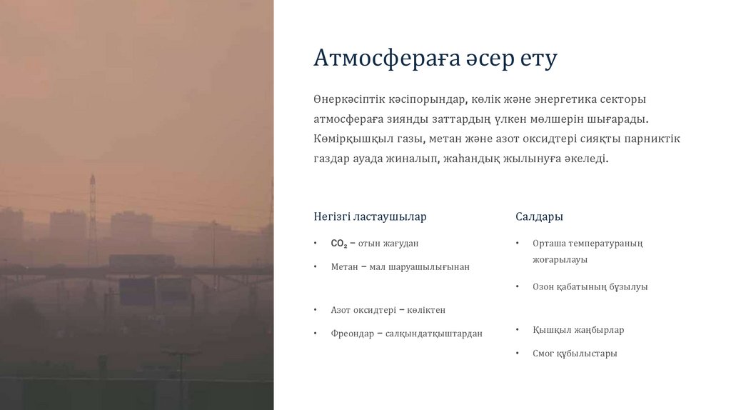 атмосфераға зиянды заттардың үлкен мөлшерін шығарады.
