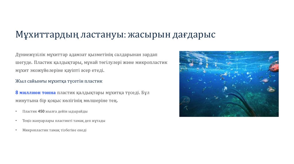 8 миллион тонна пластик қалдықтары мұхитқа түседі. Бұл