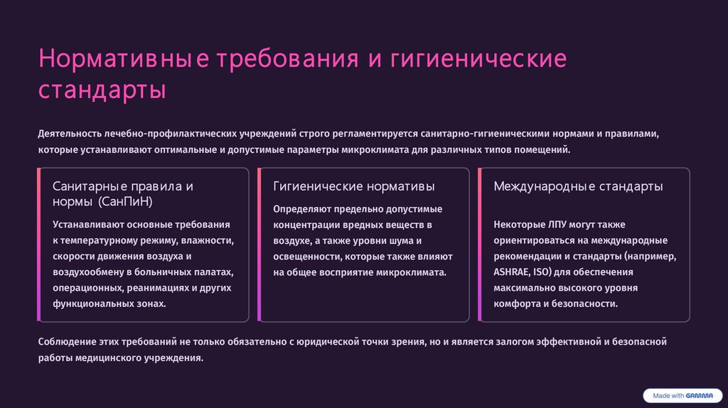 Деятельность лечебно-профилактических учреждений строго регламентируется санитарно-гигиеническими нормами и правилами,
