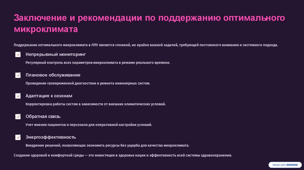 Заключение и рекомендации по поддержанию оптимальногомикроклимата