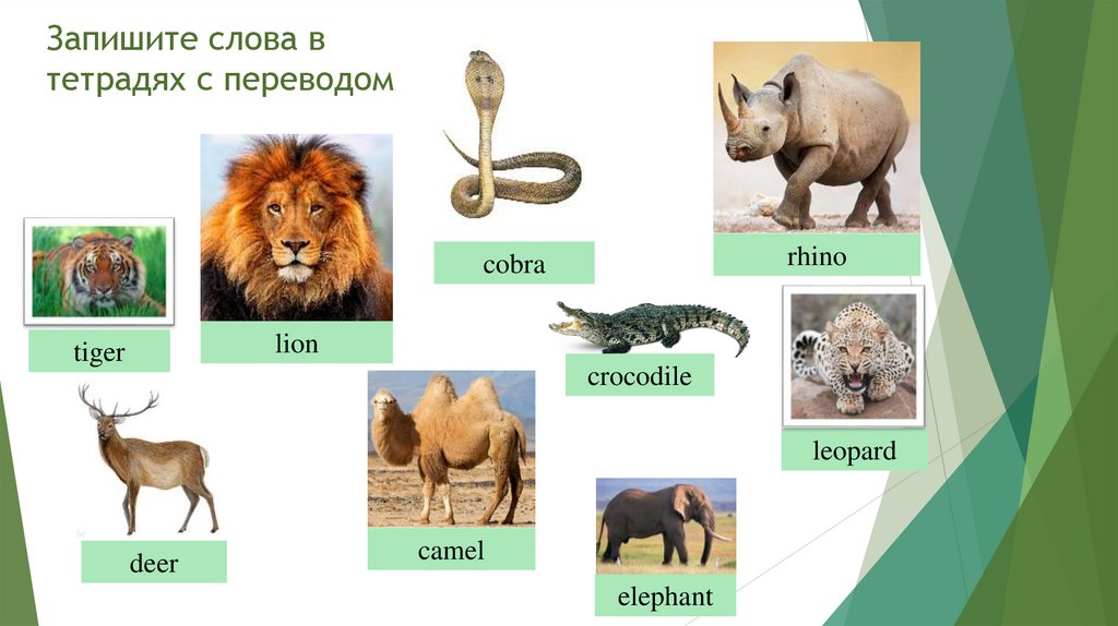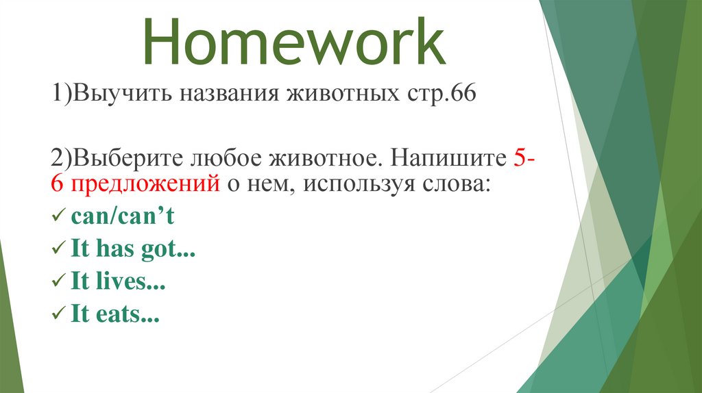 Homework1)Выучить названия животных стр.66