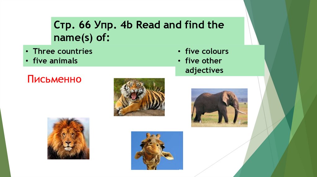 Стр. 66 Упр. 4b Read and find thename(s) of: