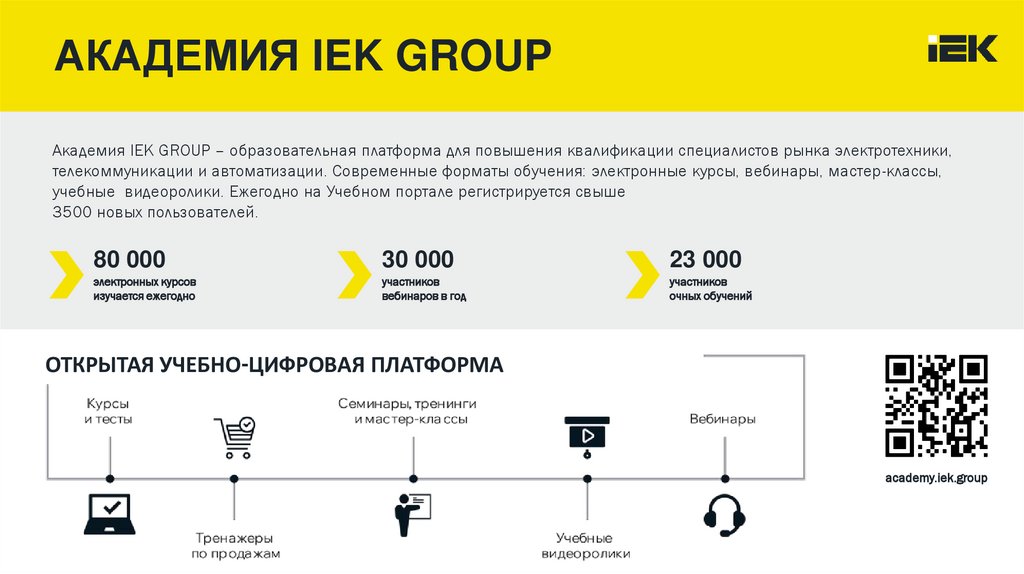 АКАДЕМИЯ IEK GROUPАкадемия IEK GROUP – образовательная платформа для повышения квалификации специалистов рынка электротехники,