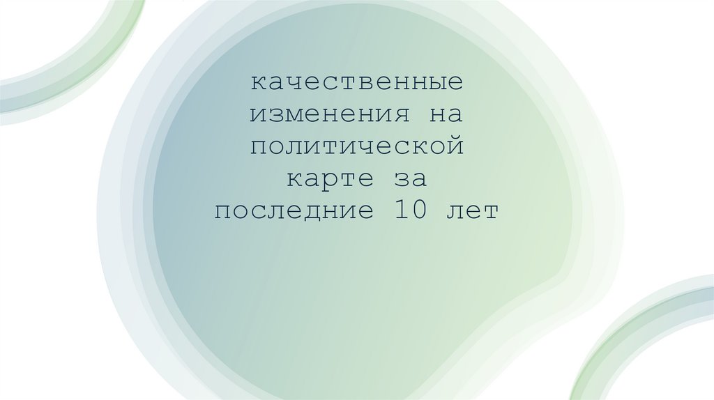 • Качественные изменения на политической карте — это фундаментальныетрансформации статуса, идентичности и международных отношений