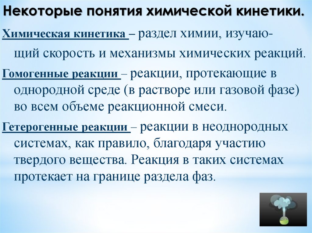 Некоторые понятия химической кинетики.Химическая кинетика – раздел химии, изучаю-