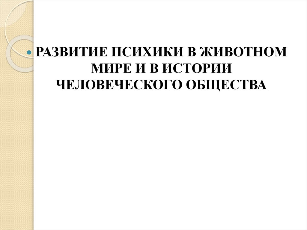 РАЗВИТИЕ ПСИХИКИ В ЖИВОТНОММИРЕ И В ИСТОРИИ