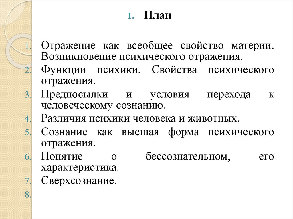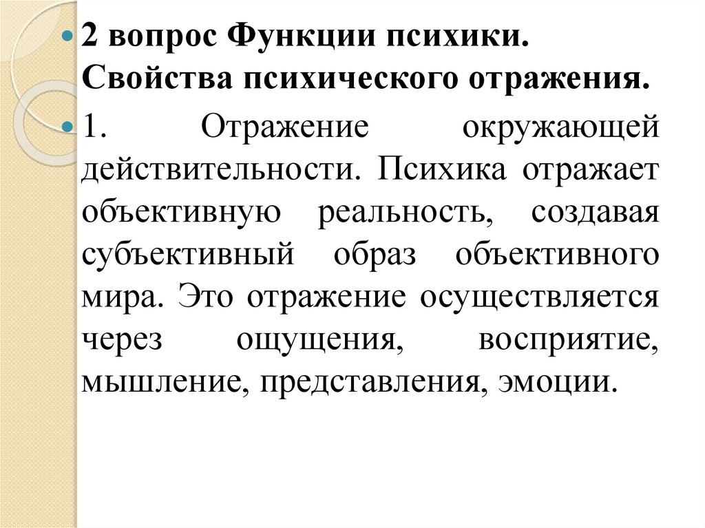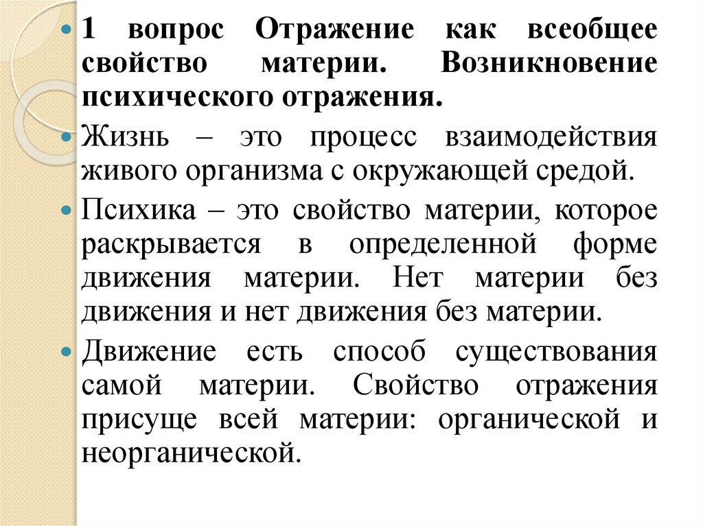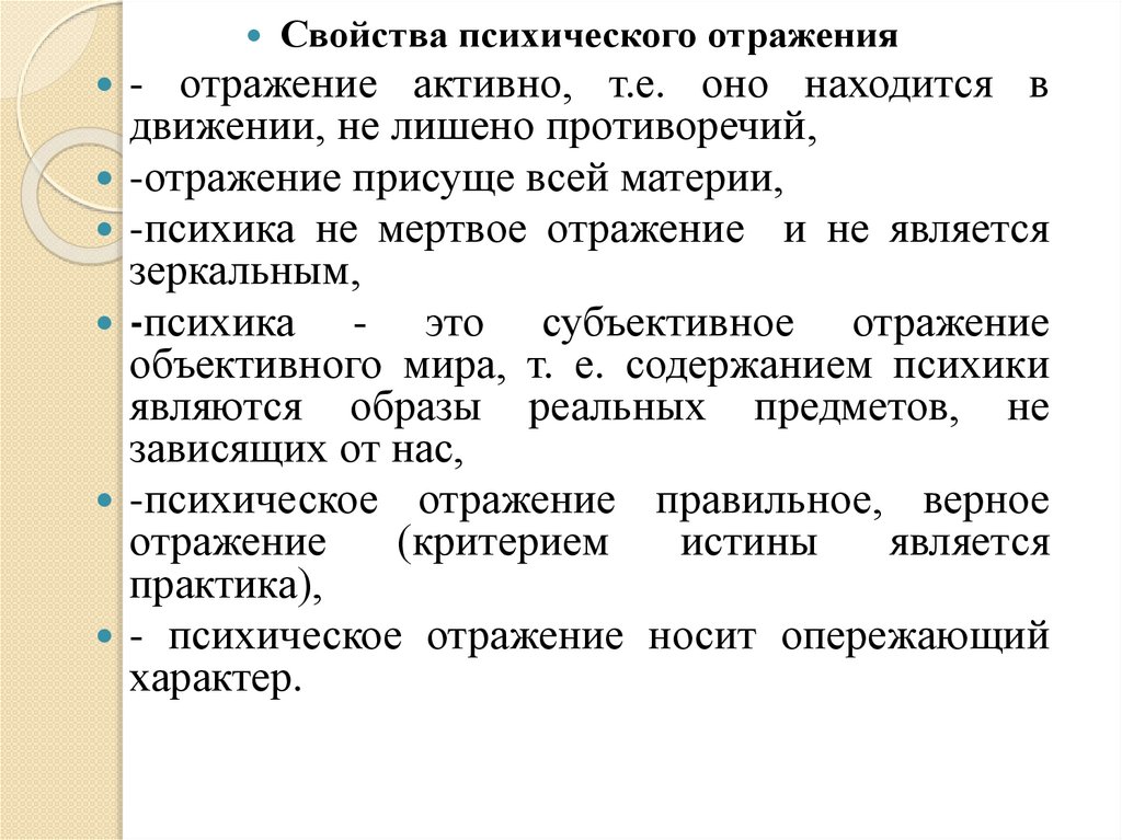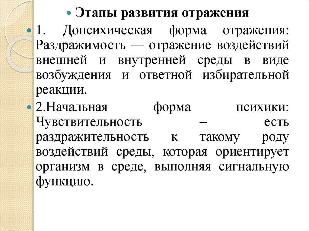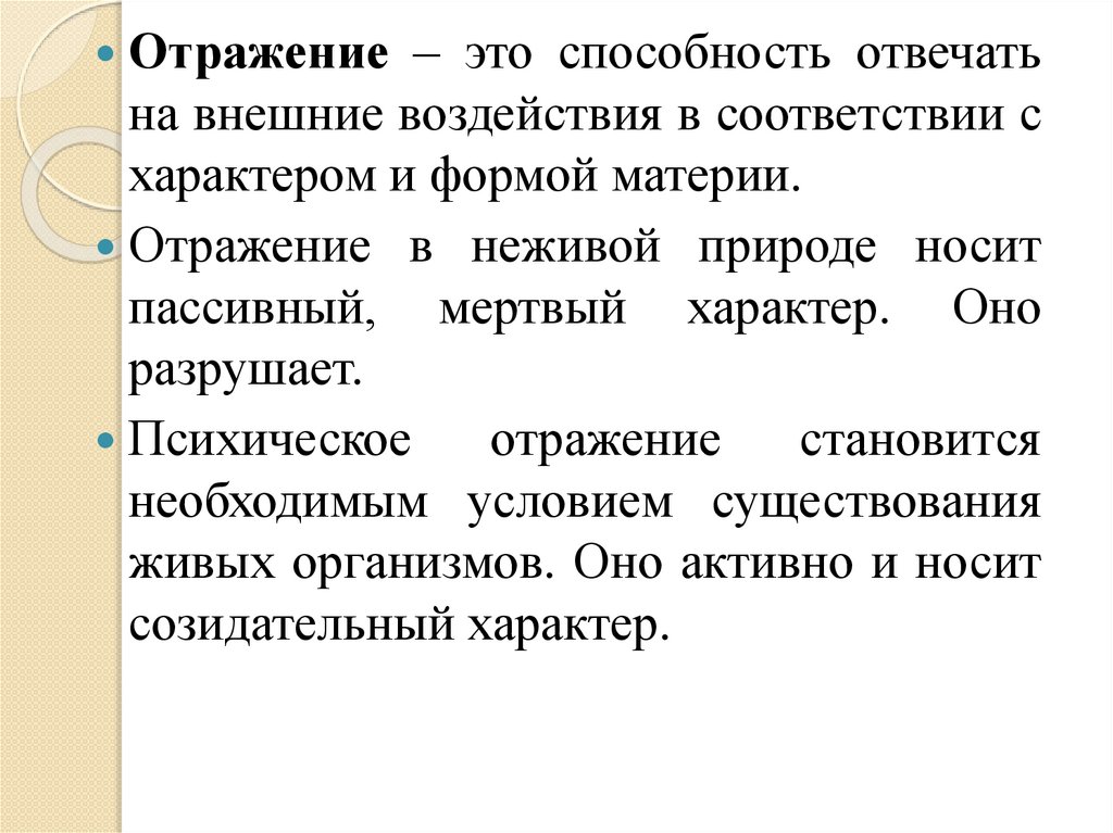 Отражение – это способность отвечатьна внешние воздействия в соответствии с