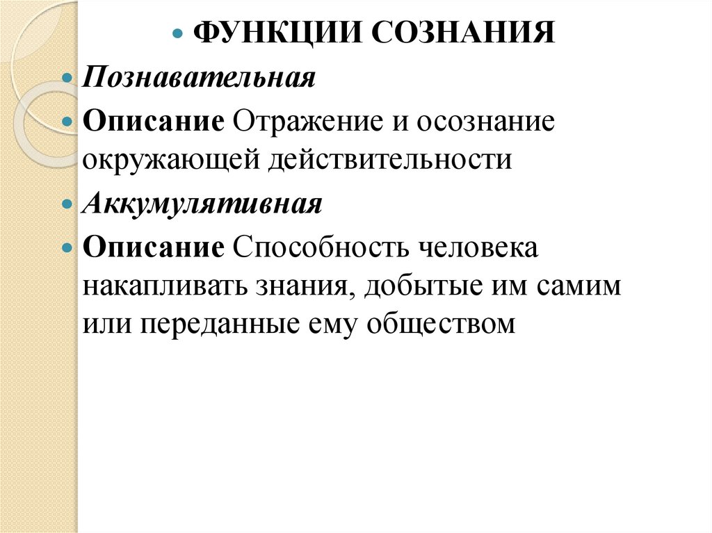 ФУНКЦИИ СОЗНАНИЯПознавательная