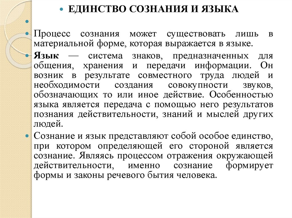 ЕДИНСТВО СОЗНАНИЯ И ЯЗЫКАПроцесс