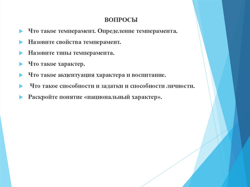 ВОПРОСЫЧто такое темперамент. Определение темперамента.
