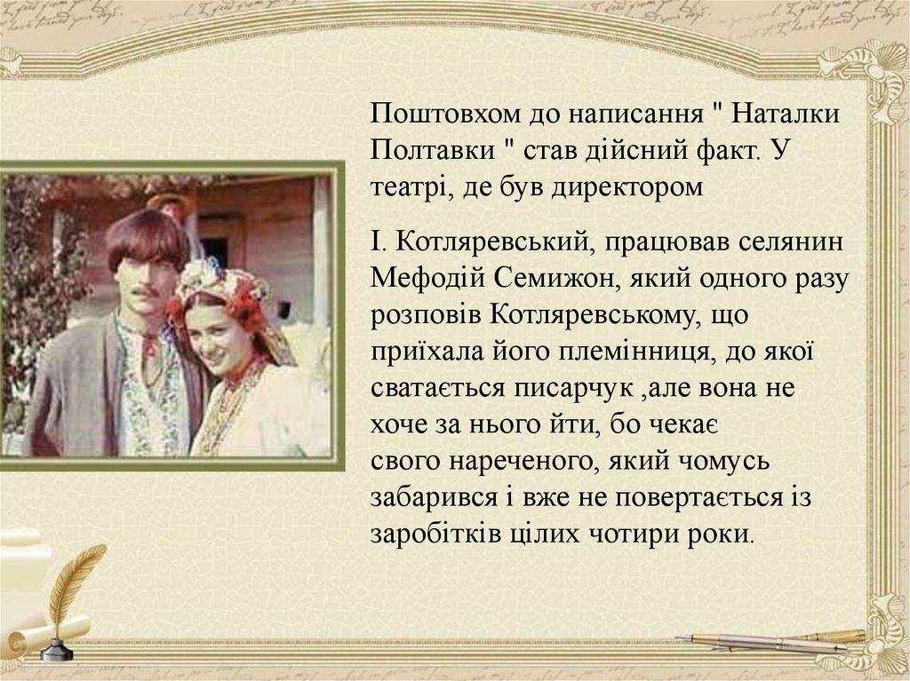 Поштовхом до написання " НаталкиПолтавки " став дійсний факт. У