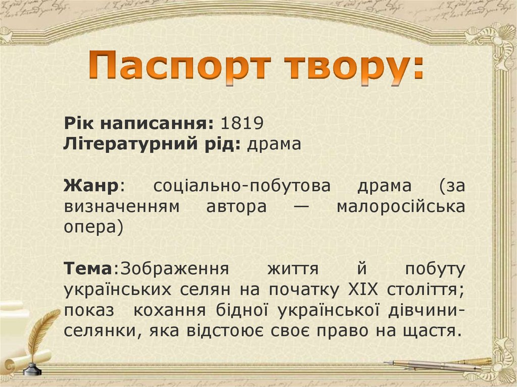 до п’єси «Наталка Полтавка»