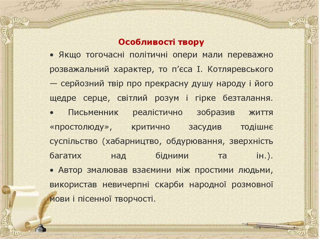 розважальний характер, то п’єса І. Котляревського