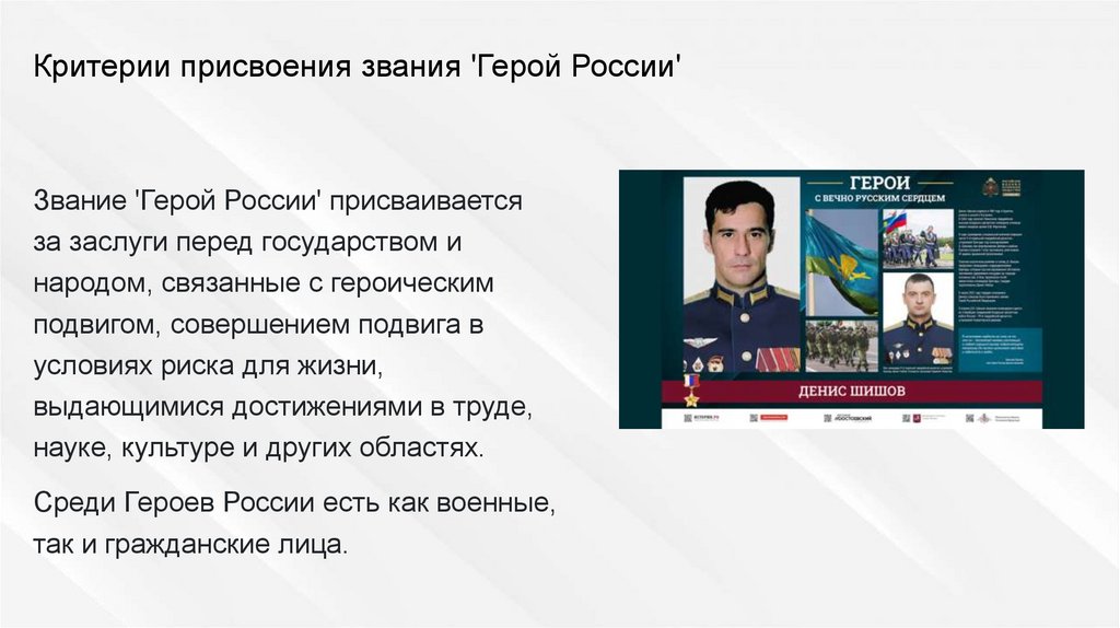 Критерии присвоения звания 'Герой России'Звание 'Герой России' присваивается