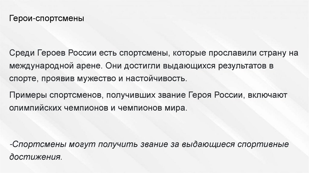 Примеры спортсменов, получивших звание Героя России, включают