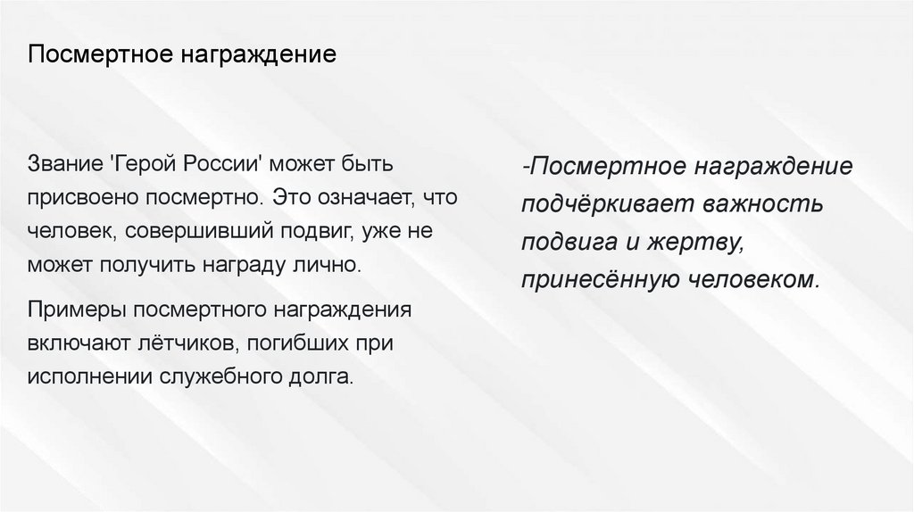 Посмертное награждениеЗвание 'Герой России' может быть