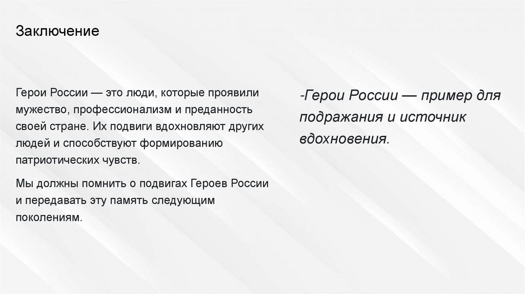 ЗаключениеГерои России — это люди, которые проявили