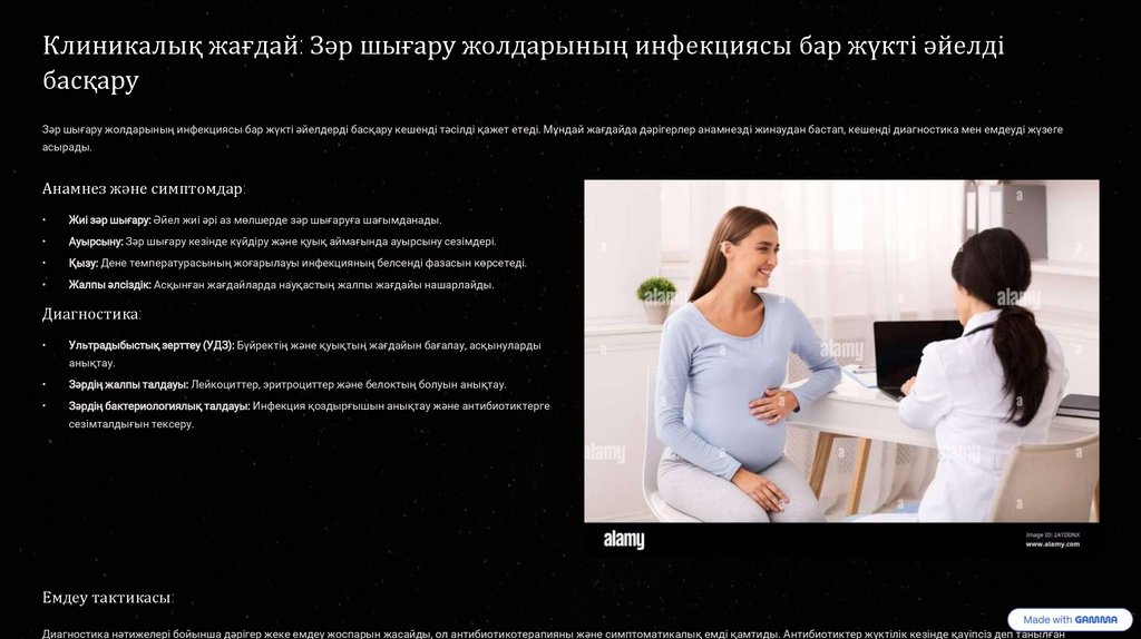 Клиникалық жағдай: Зәр шығару жолдарының инфекциясы бар жүкті әйелдібасқару