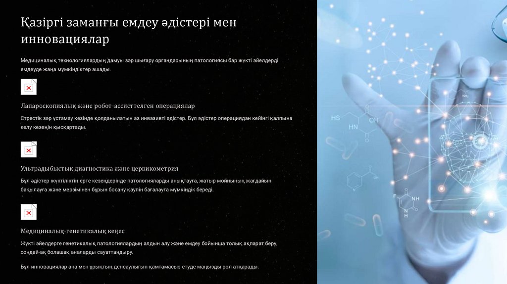 Жүкті әйелдерге генетикалық патологиялардың алдын алу және емдеу бойынша толық ақпарат беру,