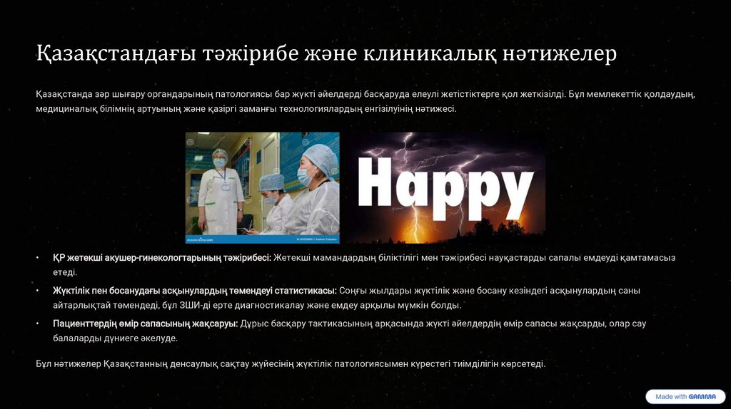 Қазақстандағы тәжірибе және клиникалық нәтижелерҚазақстанда зәр шығару органдарының патологиясы бар жүкті әйелдерді басқаруда елеулі жетістіктерге қол жеткізілді. Бұл мемлекеттік қолдаудың,