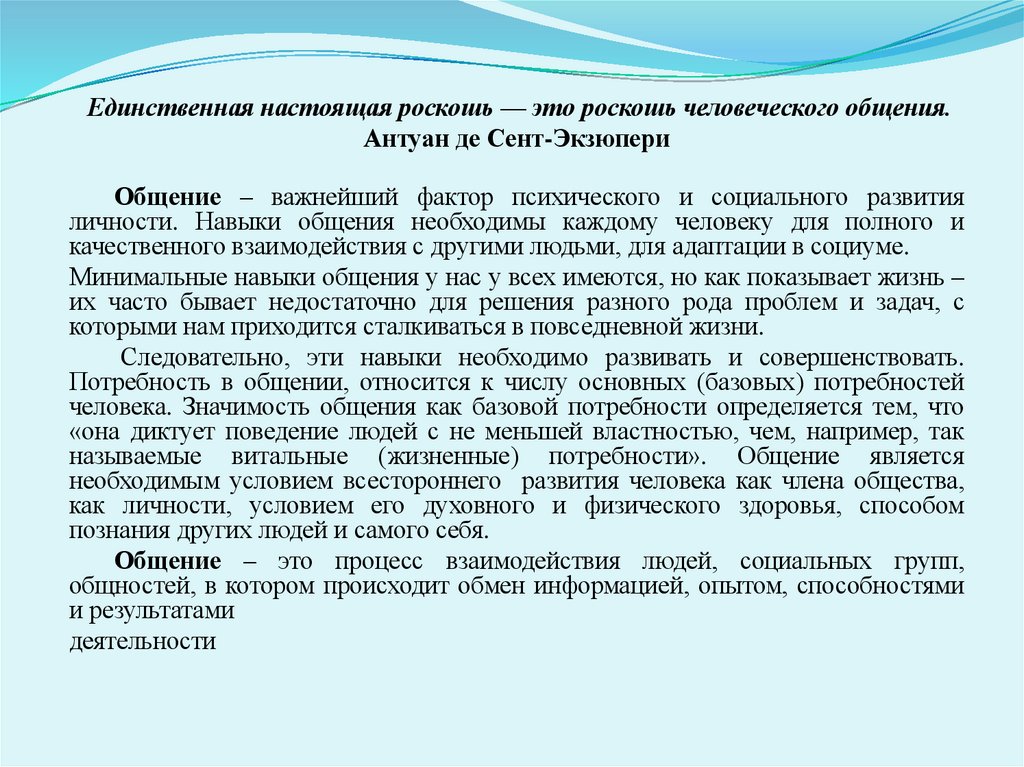 Потребность в общении, относится к числу основных (базовых) потребностей