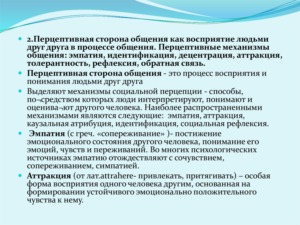 2.Перцептивная сторона общения как восприятие людьмидруг друга в процессе общения. Перцептивные механизмы