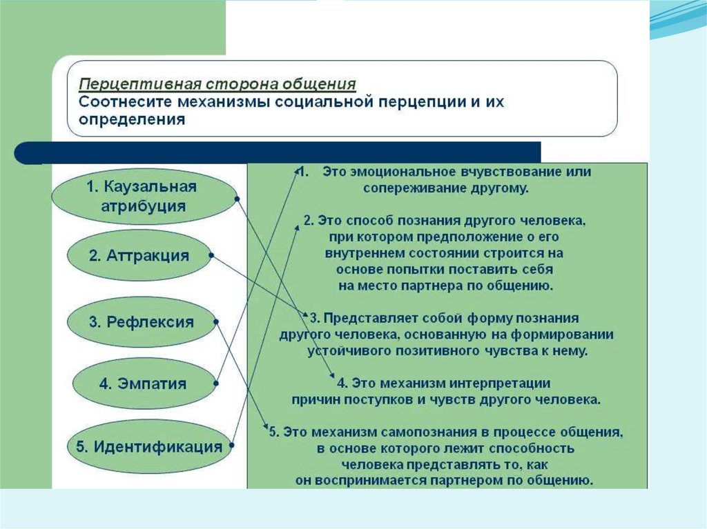 общения: эмпатия, идентификация, децентрация, аттракция,