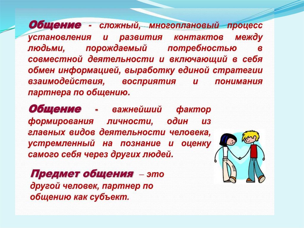 Общение – сложный многоплановый процесс установления и развитияконтактов и связей между людьми, порождаемый потребностями