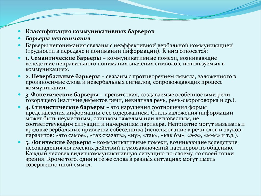 Барьеры непонимания связаны с неэффективной вербальной коммуникацией