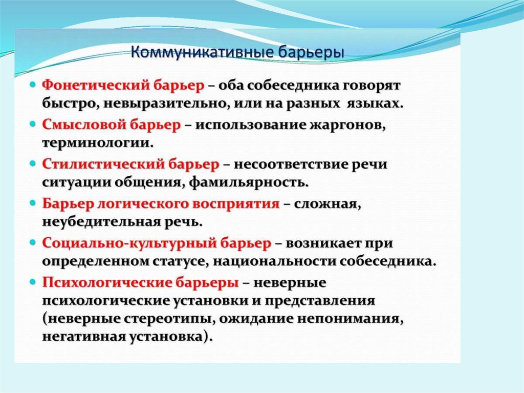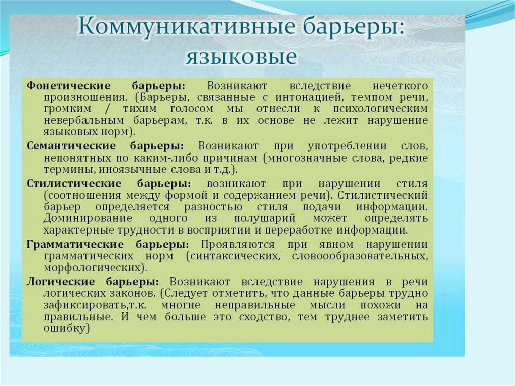 1. Семантические барьеры – коммуникативные помехи, возникающие