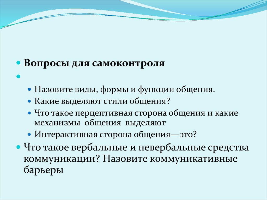 Вопросы для самоконтроляНазовите виды, формы и функции общения.