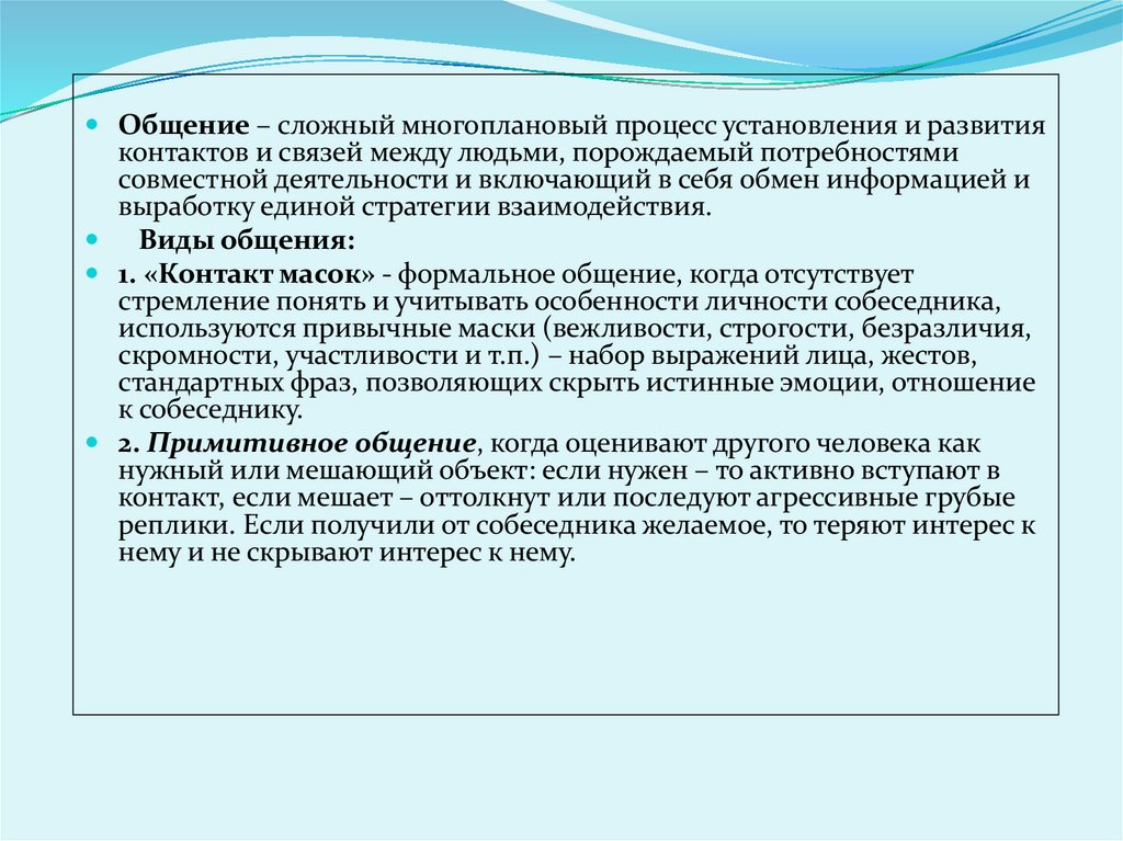 1. «Контакт масок» - формальное общение, когда отсутствует