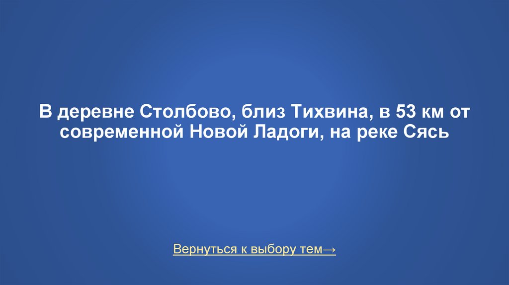 В деревне Столбово, близ Тихвина, в 53 км отсовременной Новой Ладоги, на реке Сясь