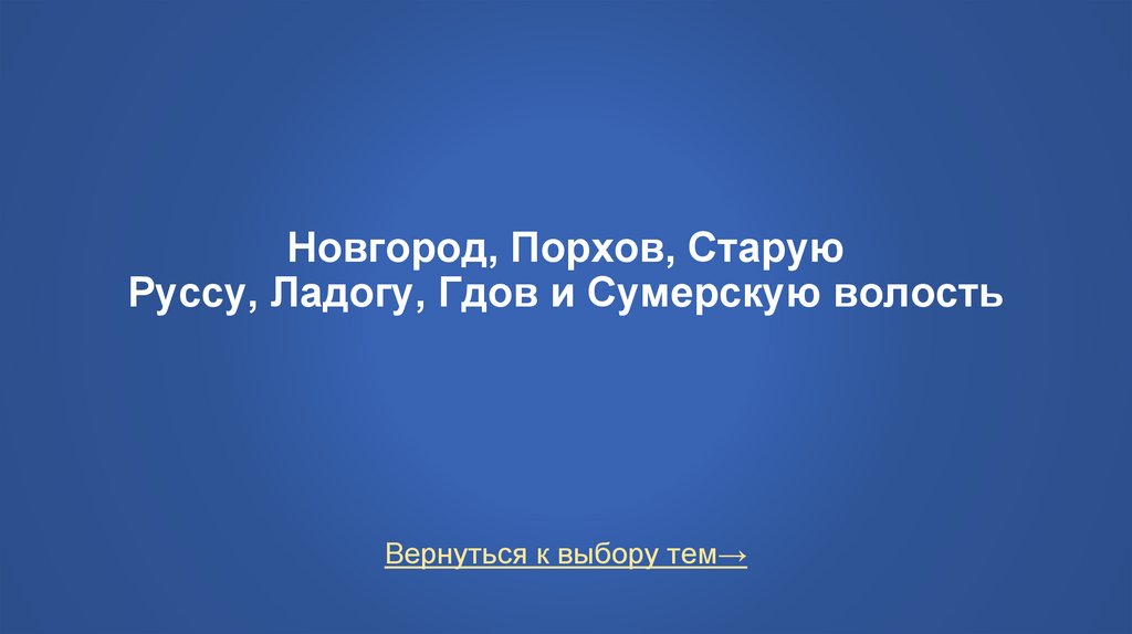Новгород, Порхов, СтаруюРуссу, Ладогу, Гдов и Сумерскую волость