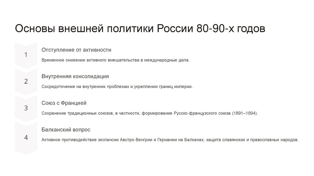 Основы внешней политики России 80-90-х годовОтступление от активности