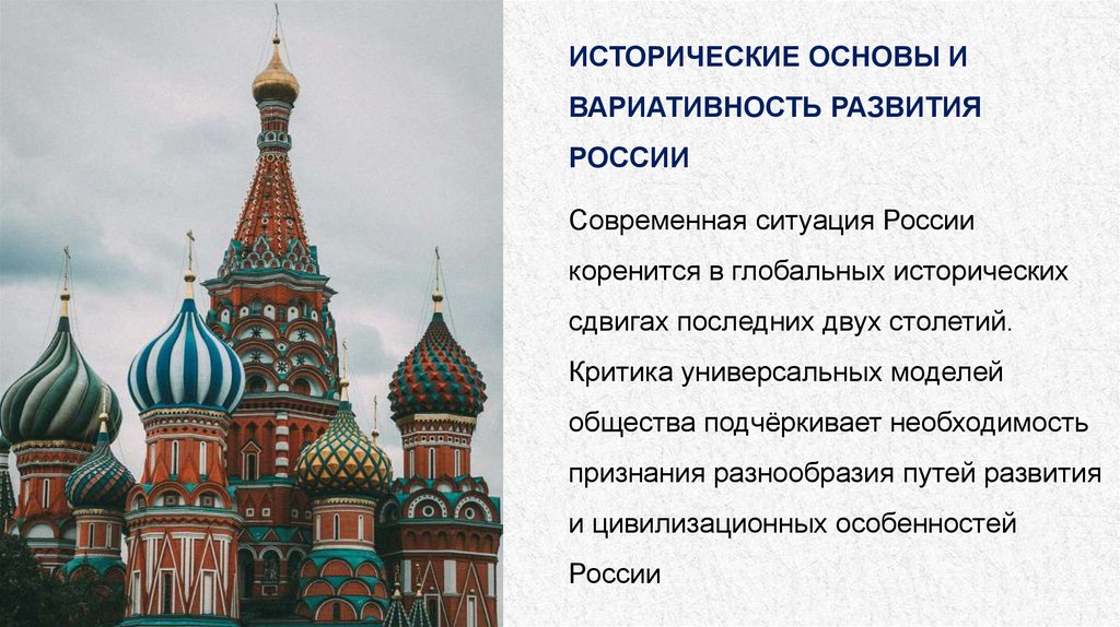 1. ОСНОВЫ РОССИЙСКОЙ ГОСУДАРСТВЕННОСТИ ВЫЗОВЫ БУДУЩЕГО И РАЗВИТИЕ Актуальные вызовы и проблемы развития России