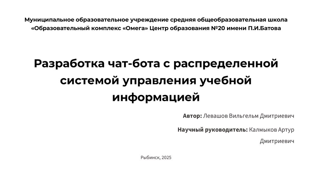 Научный руководитель: Калмыков Артур