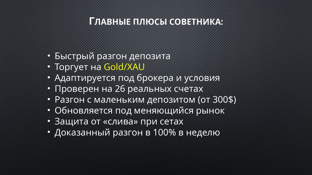 ГЛАВНЫЕ ПЛЮСЫ СОВЕТНИКА:• Быстрый разгон депозита