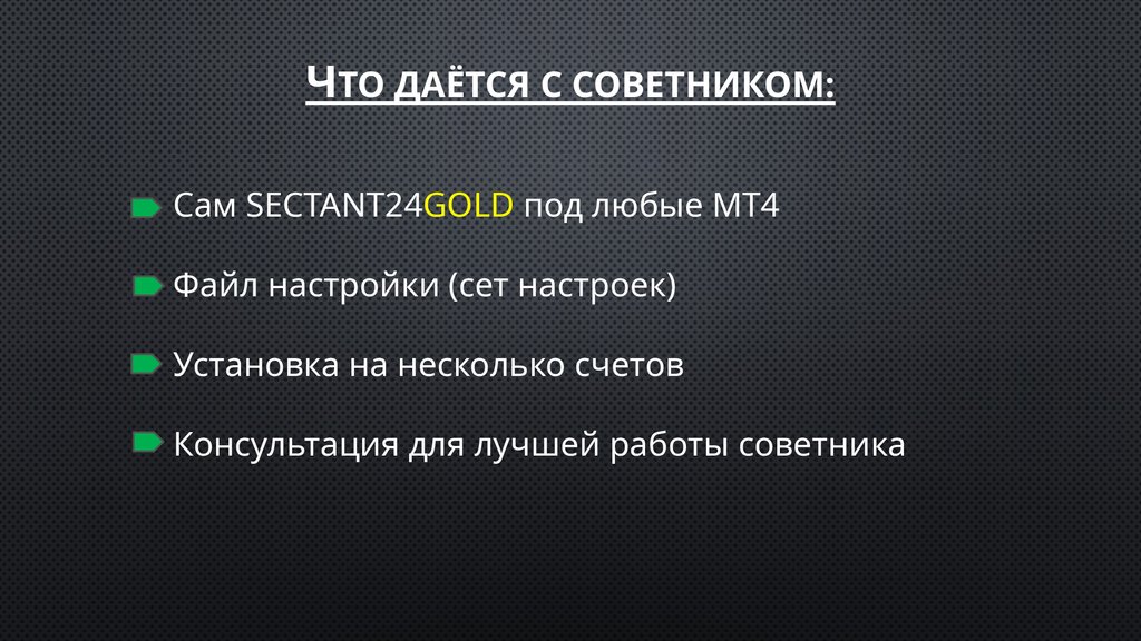 ЧТО ДАЁТСЯ С СОВЕТНИКОМ:Сам SECTANT24GOLD под любые MT4