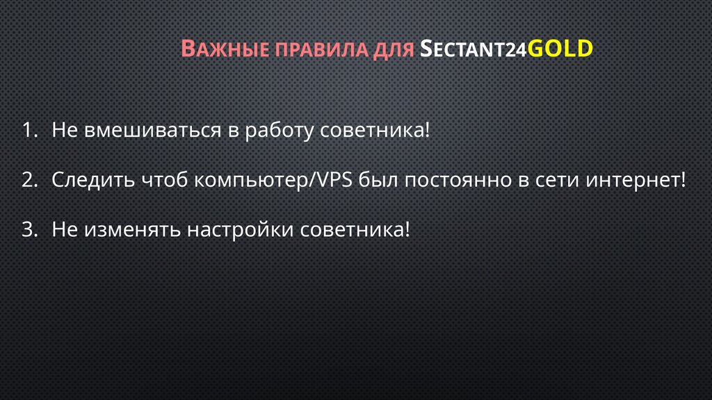 ВАЖНЫЕ ПРАВИЛА ДЛЯ SECTANT24GOLD1. Не вмешиваться в работу советника!
