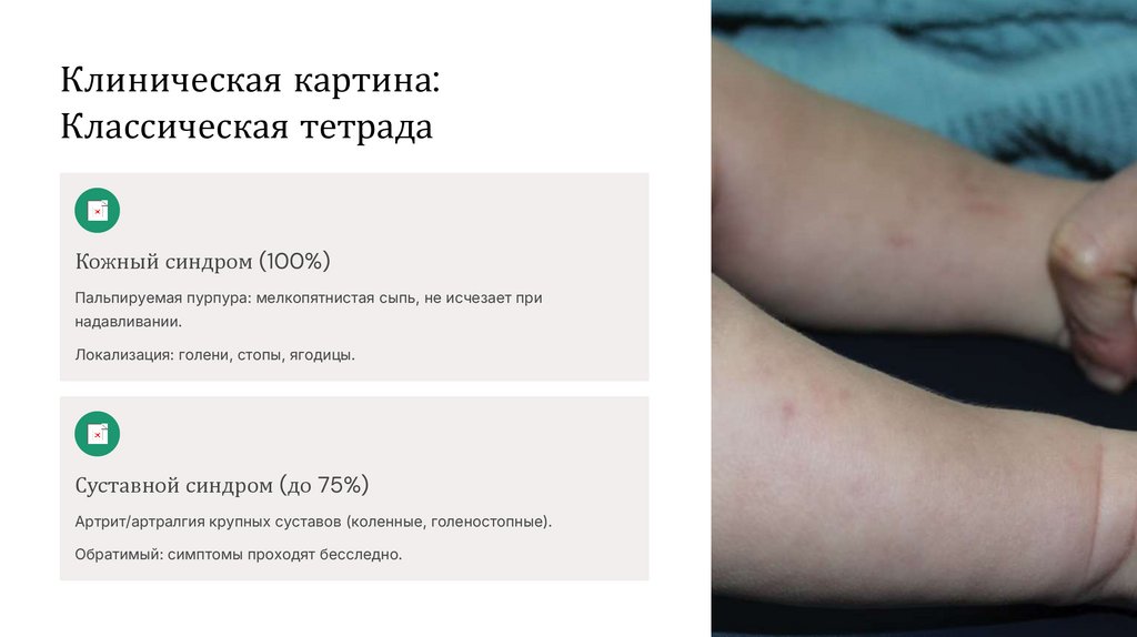 Пальпируемая пурпура: мелкопятнистая сыпь, не исчезает при