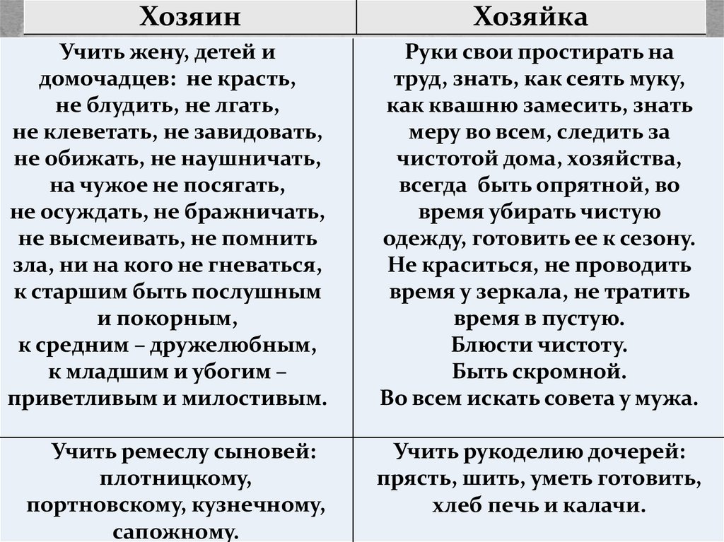 Обязанности хозяина и хозяйкиХозяин