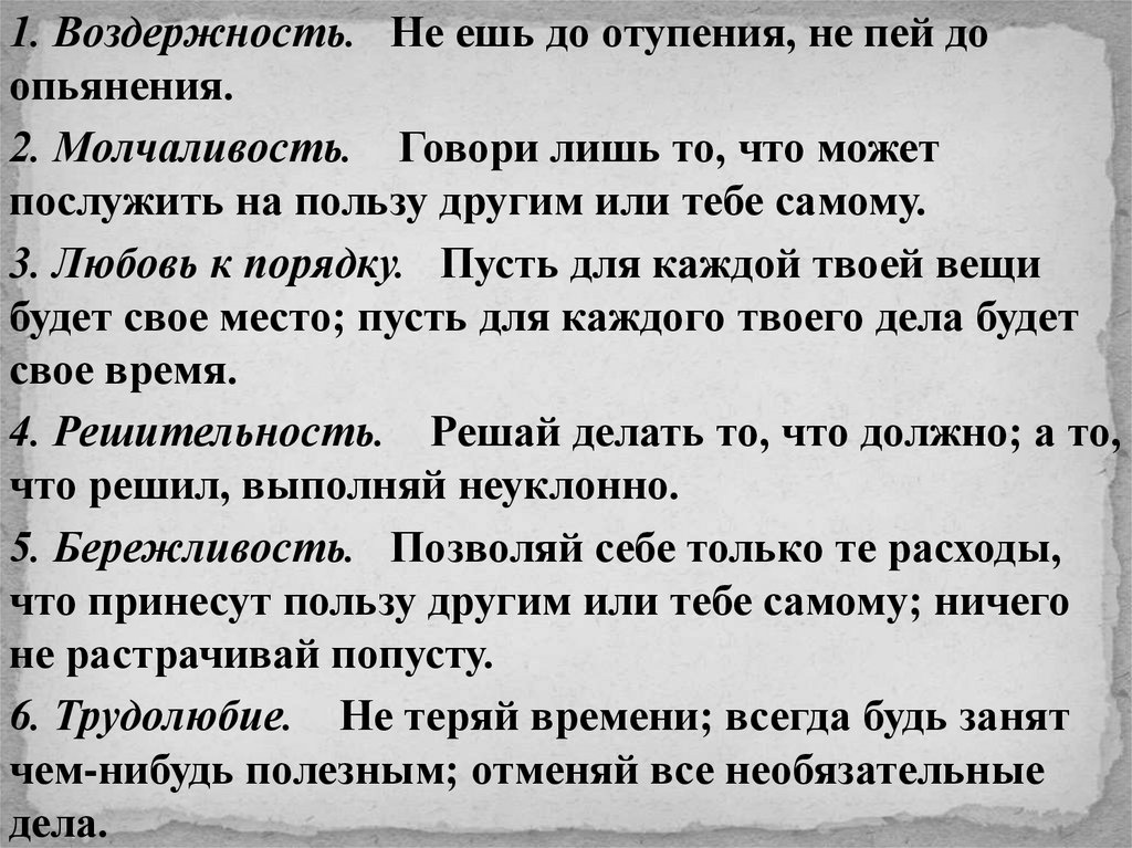 6. Трудолюбие. Не теряй времени; всегда будь занят